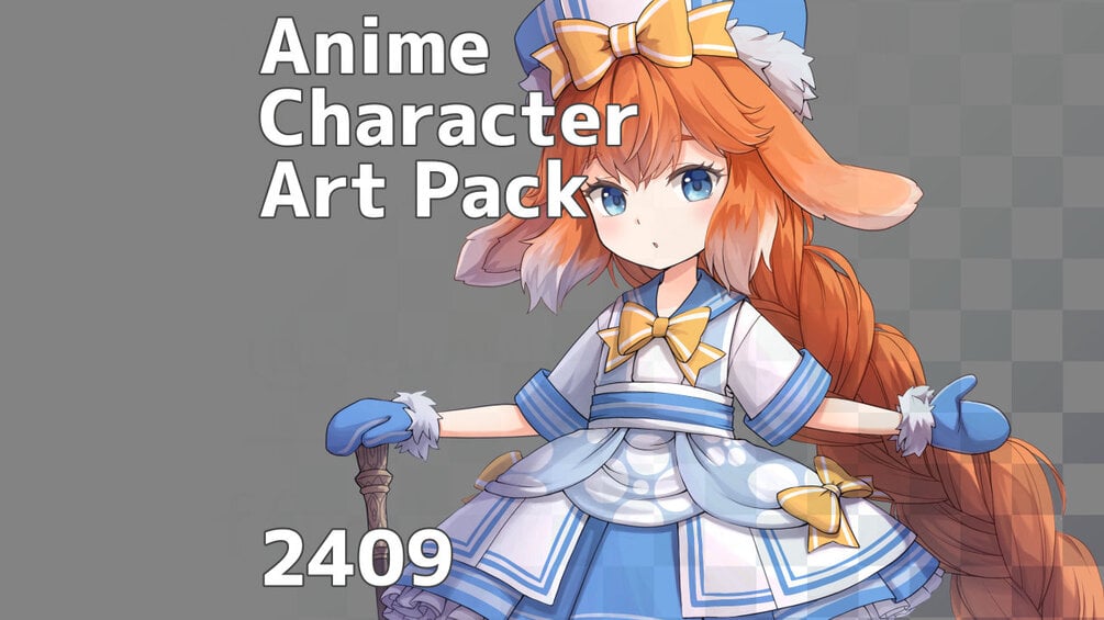 Anime Character Art Pack: 2409 - 6 Expressions | Image: Girl, therianthrope, kemonomimi